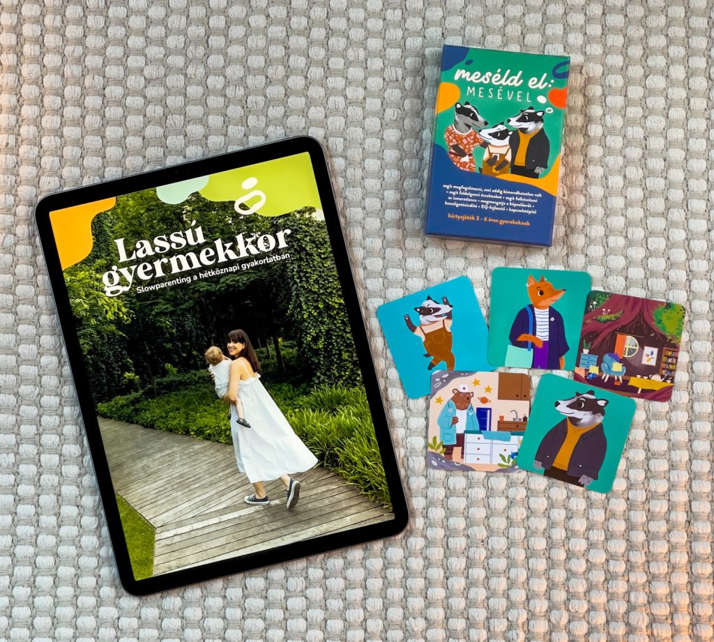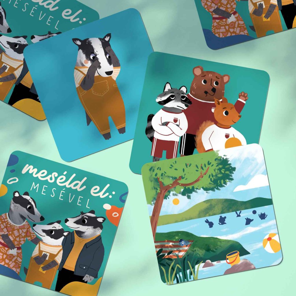 így itt volt az ideje egy újabb terméknek, ami már ehhez a korosztályhoz szól: elkészült a Meséld el: mesével! beszélgetésindító és EQ-fejlesztő kártyajátékom. Azóta is töretlenül népszerű a részletgazdag erdei világa, illetve a főszereplője, a kicsi borz által láttatott alapérzések miatt.